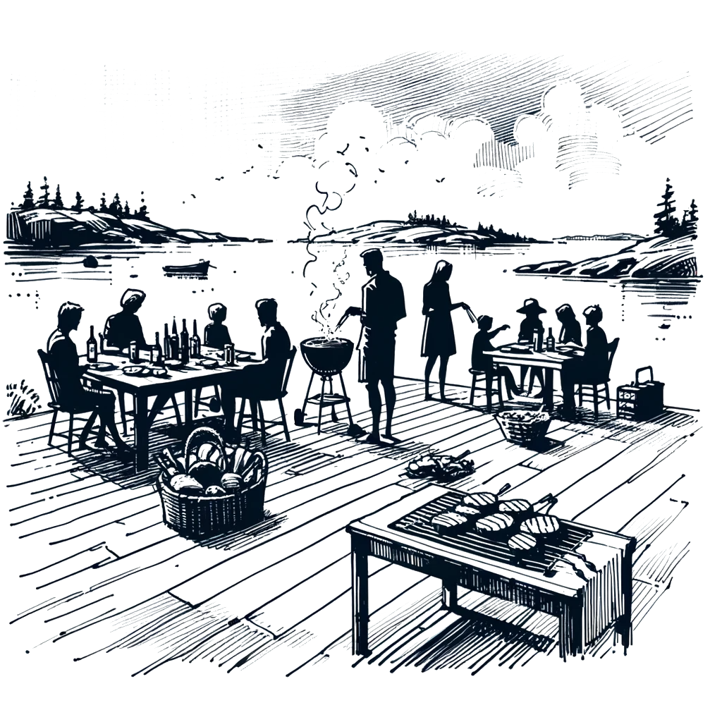 Rekommenderad avgång från Stavsnäs klockan 15.05 (se vanliga frågor för andra tider/transportmöjligheter). Därefter finns det tid för inflytt i rummen, fördrinkar och utforskning av ön. Burgare, bärs och bastu vid Strandbaren från 18.30.